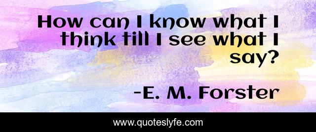 This page presents the quote "How can I know what I think till I see what I say?". Author of this quote is E. M. Forster. This quote is about writers, writing,.