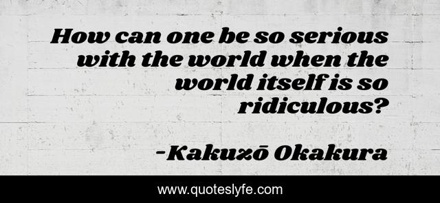 This page presents the quote "How can one be so serious with the world when the world itself is so ridiculous?". Author of this quote is Kakuzō Okakura. This quote is about existence, life, meaning-of-life,.