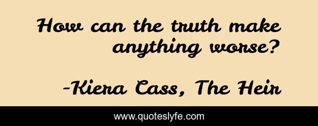 "Kiera Cass, The Heir Quotes." Quoteslyfe.com, 2025. Fri. 05 Dec. 2025. <https://www.quoteslyfe.com/quote/How-can-the-truth-make-anything-worse-172431>.