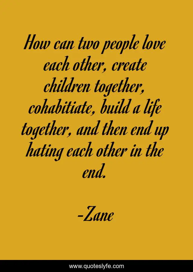This page presents the quote "How can two people love each other, create children together, cohabitiate, build a life together, and then end up hating each other in the end.". Author of this quote is Zane. .