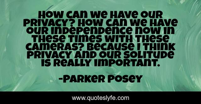 This page presents the quote "How can we have our privacy? How can we have our independence now in these times with these cameras? Because I think privacy and our solitude is really important.". Author of this quote is Parker Posey. This quote is about solitude, think, privacy,.