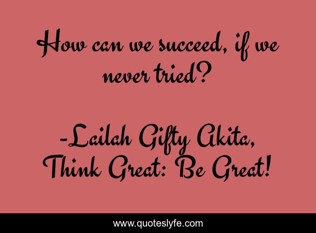 "Lailah Gifty Akita, Think Great: Be Great! Quotes." Quoteslyfe.com, 2025. Fri. 05 Dec. 2025. <https://www.quoteslyfe.com/quote/How-can-we-succeed-if-we-never-98803>.