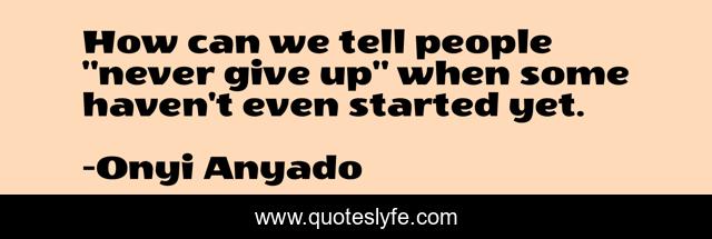 This page presents the quote "How can we tell people "never give up" when some haven't even started yet.". Author of this quote is Onyi Anyado. This quote is about never-give-up-on-your-dreams, brainy, business, entrepreneur, entrepreneurs, focus-on-your-dreams, entrepreneurship, talk-is-cheap, quotes,.