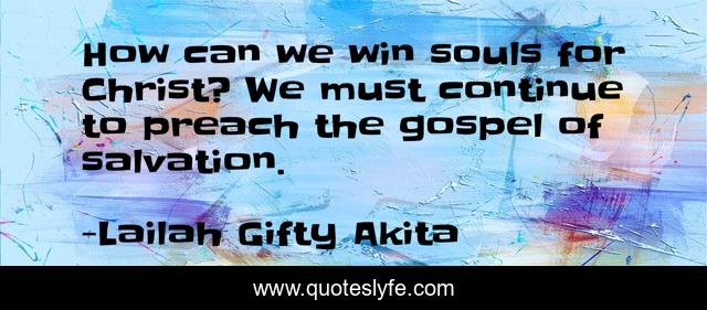 This page presents the quote "How can we win souls for Christ? We must continue to preach the gospel of salvation.". Author of this quote is Lailah Gifty Akita. This quote is about spiritual, christian, belief, sins, religion, inspirational, enthusiasm, salvation, saved-souls,.