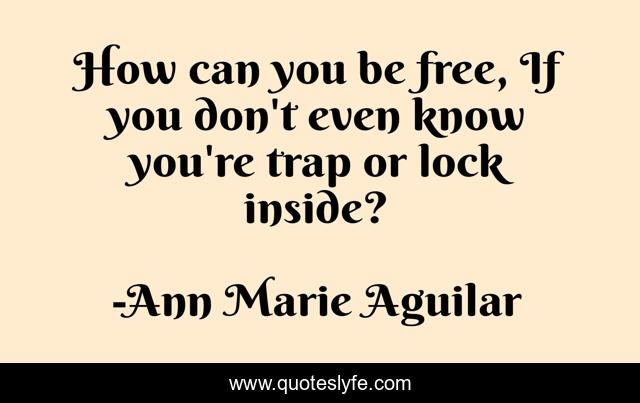 This page presents the quote "How can you be free, If you don't even know you're trap or lock inside?". Author of this quote is Ann Marie Aguilar. This quote is about freedom, trap, free, bondage,.