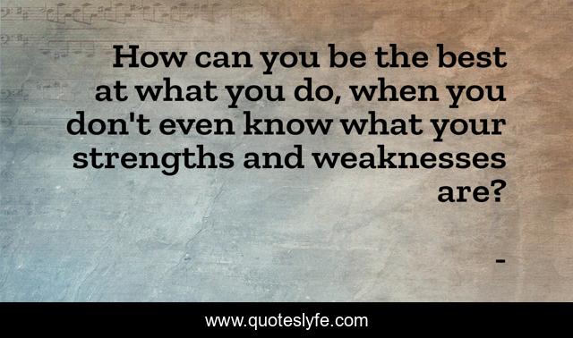 How can you be the best at what you do, when you don't even know what your strengths and weaknesses are?