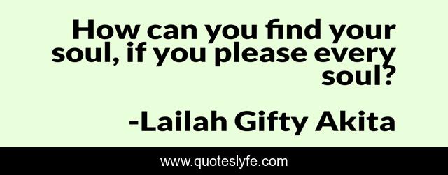 This page presents the quote "How can you find your soul, if you please every soul?". Author of this quote is Lailah Gifty Akita. This quote is about enthusiasm, seek, soul, inspirational, opinions-lailah-gifty-akita,.