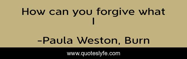 "Paula Weston, Burn Quotes." Quoteslyfe.com, 2025. Sat. 06 Dec. 2025. <https://www.quoteslyfe.com/quote/How-can-you-forgive-what-I-121623>.