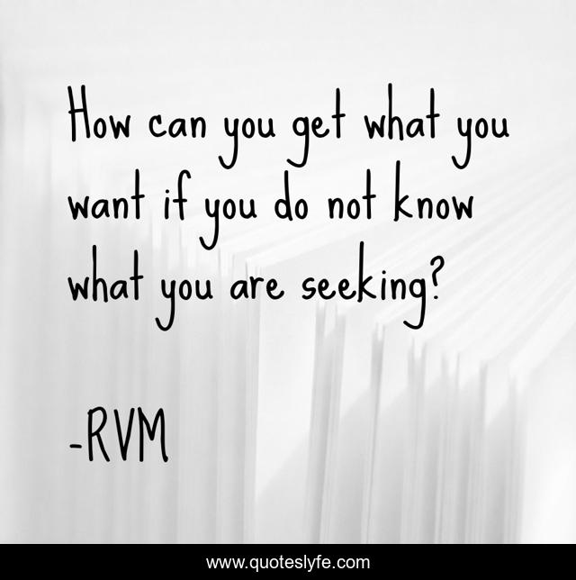 This page presents the quote "How can you get what you want if you do not know what you are seeking?". Author of this quote is RVM. This quote is about motivation, inspiration,.