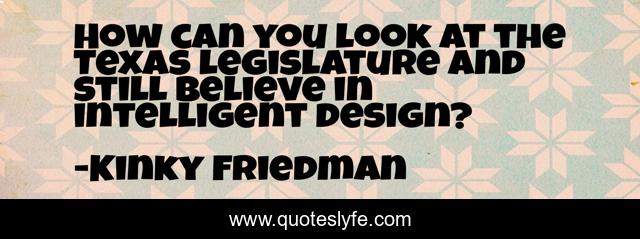 This page presents the quote "How can you look at the Texas legislature and still believe in intelligent design?". Author of this quote is Kinky Friedman. This quote is about believe, intelligent,.