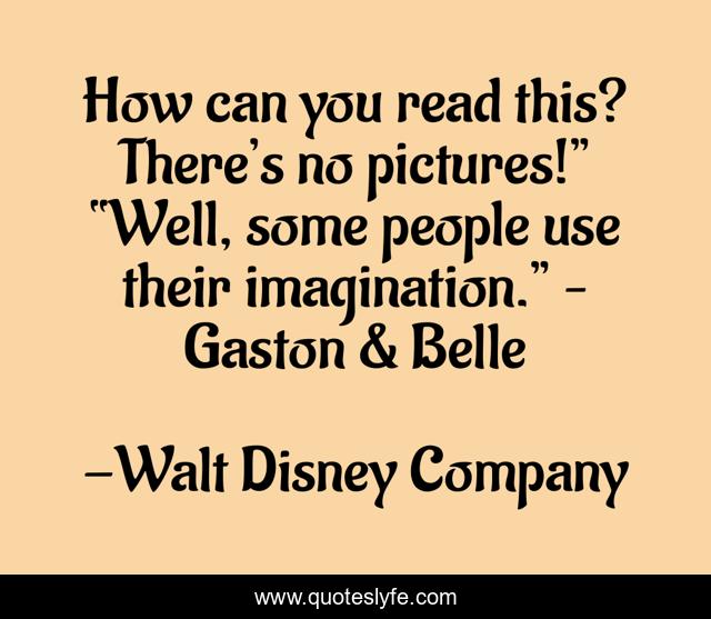 This page presents the quote "How can you read this? There’s no pictures!” “Well, some people use their imagination.” – Gaston & Belle". Author of this quote is Walt Disney Company. .