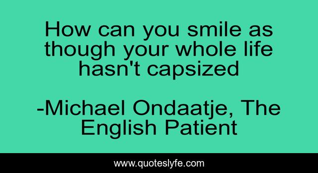 This page presents the quote "How can you smile as though your whole life hasn't capsized". Author of this quote is Michael Ondaatje, The English Patient. .
