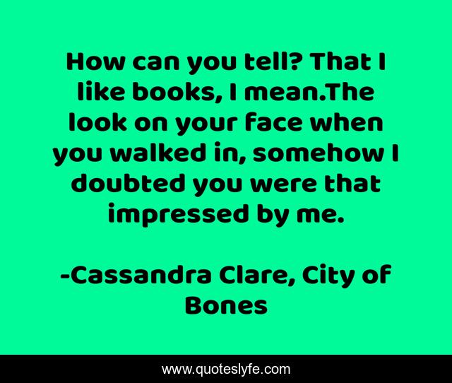 This page presents the quote "How can you tell? That I like books, I mean.The look on your face when you walked in, somehow I doubted you were that impressed by me.". Author of this quote is Cassandra Clare, City of Bones. This quote is about first-impressions, books,.