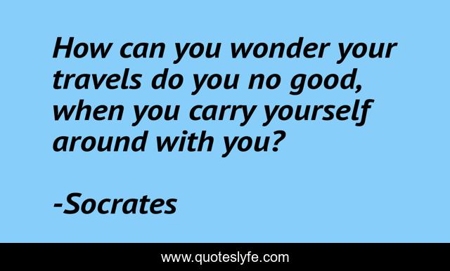 This page presents the quote "How can you wonder your travels do you no good, when you carry yourself around with you?". Author of this quote is Socrates. .