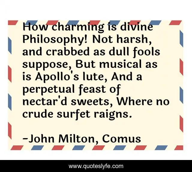 "John Milton, Comus Quotes." Quoteslyfe.com, 2025. Fri. 05 Dec. 2025. <https://www.quoteslyfe.com/quote/How-charming-is-divine-Philosophy-Not-harsh-8462>.