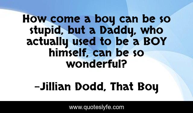 This page presents the quote "How come a boy can be so stupid, but a Daddy, who actually used to be a BOY himself, can be so wonderful?". Author of this quote is Jillian Dodd, That Boy. .