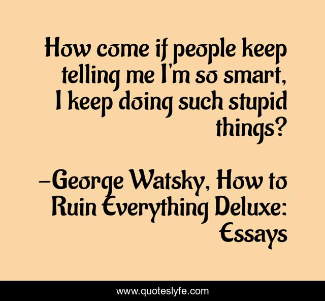 This page presents the quote "How come if people keep telling me I'm so smart, I keep doing such stupid things?". Author of this quote is George Watsky, How to Ruin Everything Deluxe: Essays. This quote is about witty, how-to-ruin-everything, george-watsky, smart, youtuber, thoughts,.