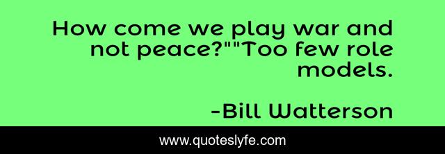 This page presents the quote "How come we play war and not peace?""Too few role models.". Author of this quote is Bill Watterson. This quote is about play, peace, war,.