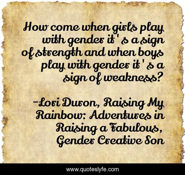 "Lori Duron, Raising My Rainbow: Adventures in Raising a Fabulous, Gender Creative Son Quotes." Quoteslyfe.com, 2025. Mon. 08 Dec. 2025. <https://www.quoteslyfe.com/quote/How-come-when-girls-play-with-gender-231215>.