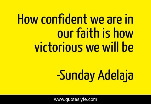 This page presents the quote "How confident we are in our faith is how victorious we will be". Author of this quote is Sunday Adelaja. This quote is about confident, national-transformation, faith, victorious,.