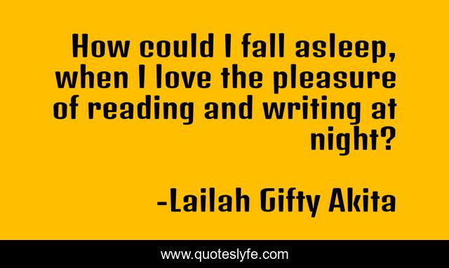 This page presents the quote "How could I fall asleep, when I love the pleasure of reading and writing at night?". Author of this quote is Lailah Gifty Akita. This quote is about lailah-gifty-akita-affirmations, reading, writing,.