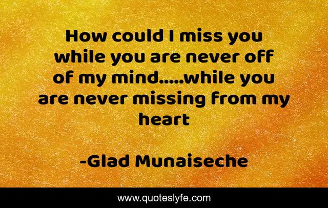 This page presents the quote "How could I miss you while you are never off of my mind.....while you are never missing from my heart". Author of this quote is Glad Munaiseche. This quote is about heart, love, affection, missing,.