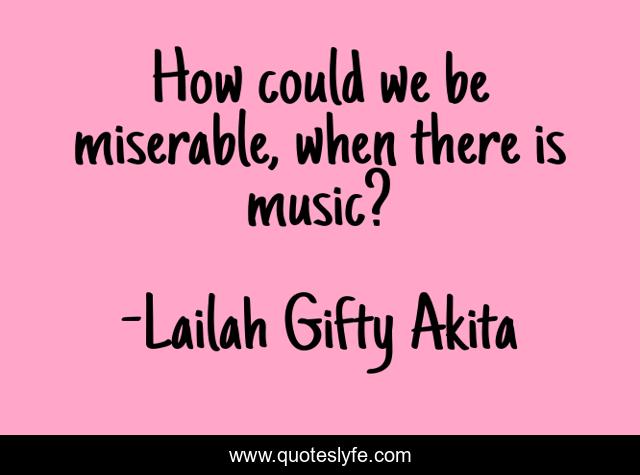 This page presents the quote "How could we be miserable, when there is music?". Author of this quote is Lailah Gifty Akita. This quote is about smiles, sorrow, music, inspirational, self-help, miserable, enthusiasm,.