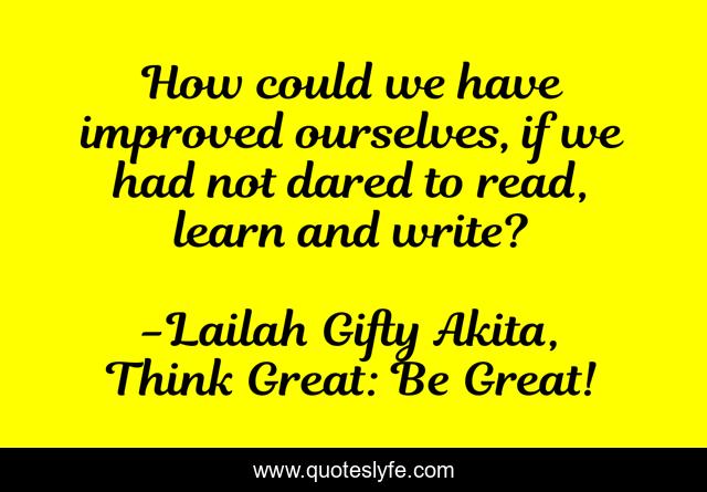 "Lailah Gifty Akita, Think Great: Be Great! Quotes." Quoteslyfe.com, 2025. Sat. 06 Dec. 2025. <https://www.quoteslyfe.com/quote/How-could-we-have-improved-ourselves-if-91780>.