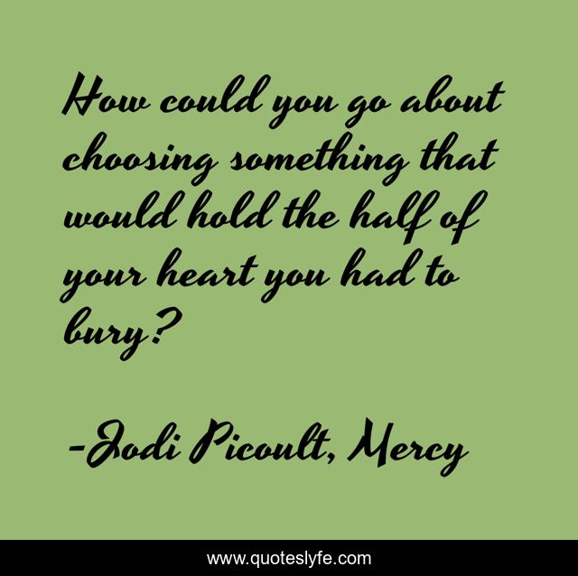This page presents the quote "How could you go about choosing something that would hold the half of your heart you had to bury?". Author of this quote is Jodi Picoult, Mercy. This quote is about loss, death, love, heart, funeral, bereavement, mourning, casket, affection,.