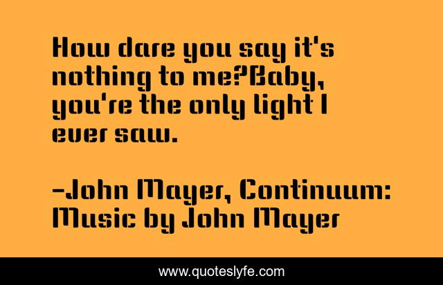 This page presents the quote "How dare you say it's nothing to me?Baby, you're the only light I ever saw.". Author of this quote is John Mayer, Continuum: Music by John Mayer. This quote is about relationships, love, song, couples, breakups, affection,.