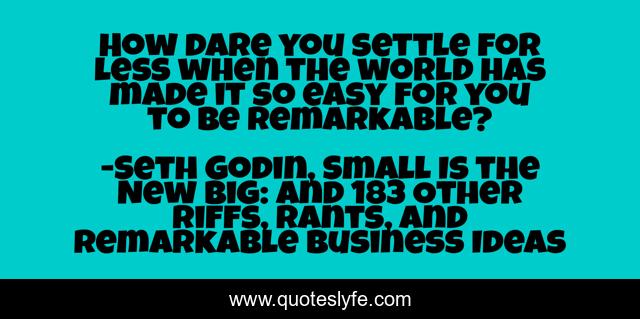 "Seth Godin, Small Is the New Big: and 183 Other Riffs, Rants, and Remarkable Business Ideas Quotes." Quoteslyfe.com, 2025. Fri. 05 Dec. 2025. <https://www.quoteslyfe.com/quote/How-dare-you-settle-for-less-when-59615>.