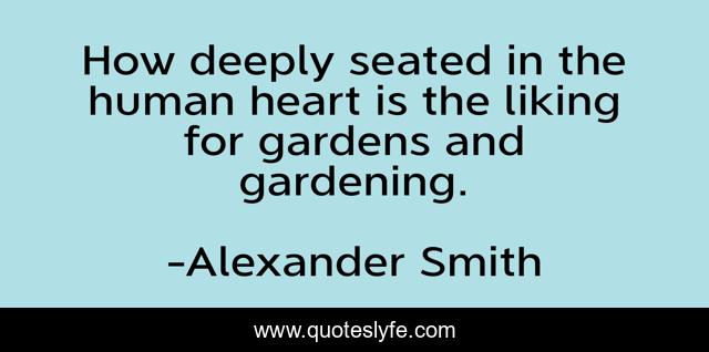 This page presents the quote "How deeply seated in the human heart is the liking for gardens and gardening.". Author of this quote is Alexander Smith. This quote is about human heart, heart, human,.