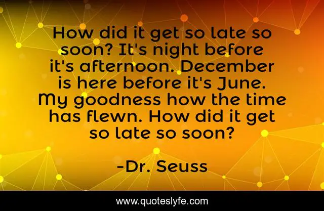 This page presents the quote "How did it get so late so soon? It's night before it's afternoon. December is here before it's June. My goodness how the time has flewn. How did it get so late so soon?". Author of this quote is Dr. Seuss. This quote is about late, soon, time,.