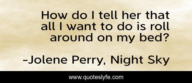 This page presents the quote "How do I tell her that all I want to do is roll around on my bed?". Author of this quote is Jolene Perry, Night Sky. This quote is about jameson, wanting, thoughts,.