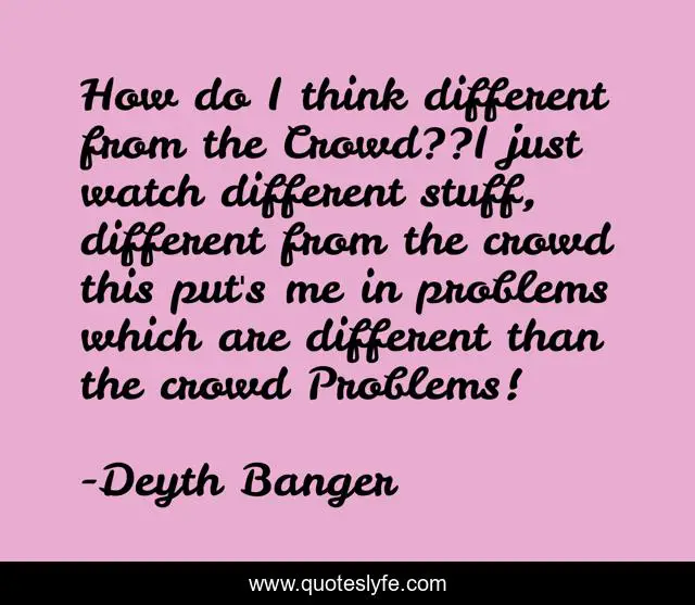 "Deyth Banger Quotes." Quoteslyfe.com, 2025. Sat. 06 Dec. 2025. <https://www.quoteslyfe.com/quote/How-do-I-think-different-from-the-213418>.