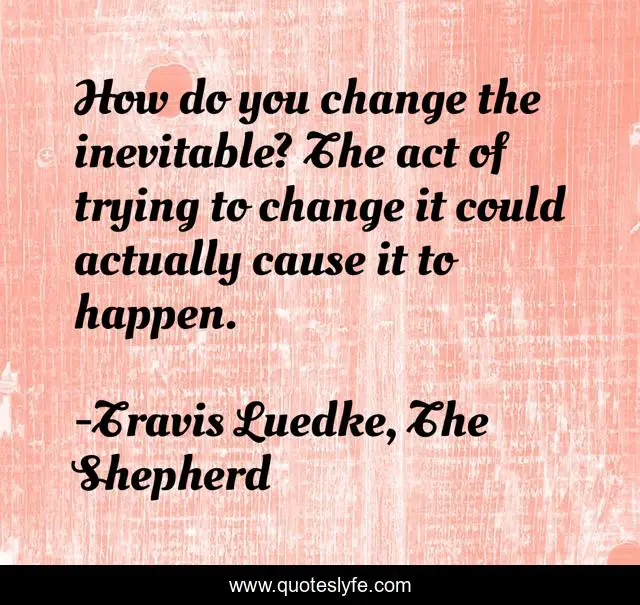 "Travis Luedke, The Shepherd Quotes." Quoteslyfe.com, 2025. Sat. 06 Dec. 2025. <https://www.quoteslyfe.com/quote/How-do-you-change-the-inevitable-The-153915>.