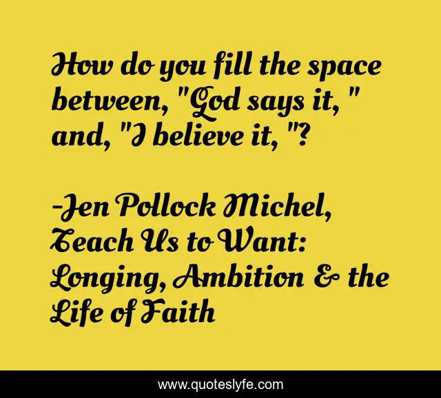 This page presents the quote "How do you fill the space between, "God says it, " and, "I believe it, "?". Author of this quote is Jen Pollock Michel, Teach Us to Want: Longing, Ambition & the Life of Faith. This quote is about thought-life, anxiety, worry,.