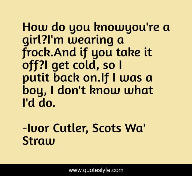 "Ivor Cutler, Scots Wa' Straw Quotes." Quoteslyfe.com, 2025. Fri. 05 Dec. 2025. <https://www.quoteslyfe.com/quote/How-do-you-knowyou-re-a-girl-25344>.