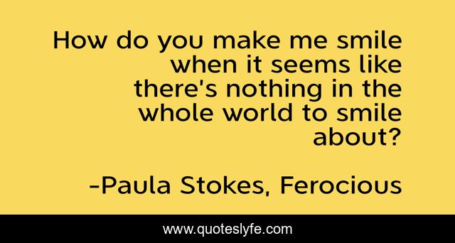 This page presents the quote "How do you make me smile when it seems like there’s nothing in the whole world to smile about?". Author of this quote is Paula Stokes, Ferocious. This quote is about kindness, love, affection,.