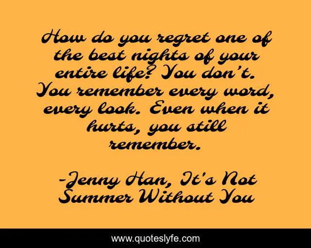 "Jenny Han, It's Not Summer Without You Quotes." Quoteslyfe.com, 2025. Fri. 05 Dec. 2025. <https://www.quoteslyfe.com/quote/How-do-you-regret-one-of-the-116116>.