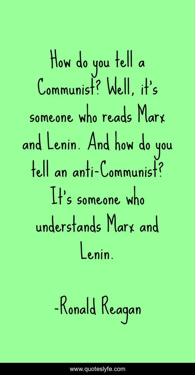 This page presents the quote "How do you tell a Communist? Well, it’s someone who reads Marx and Lenin. And how do you tell an anti-Communist? It’s someone who understands Marx and Lenin.". Author of this quote is Ronald Reagan. This quote is about politics, communism,.