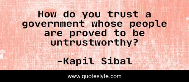 This page presents the quote "How do you trust a government whose people are proved to be untrustworthy?". Author of this quote is Kapil Sibal. This quote is about government, people,.