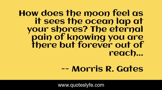 This page presents the quote "How does the moon feel as it sees the ocean lap at your shores? The eternal pain of knowing you are there but forever out of reach...". Author of this quote is - Morris R. Gates. This quote is about loss, seperation, greiving,.