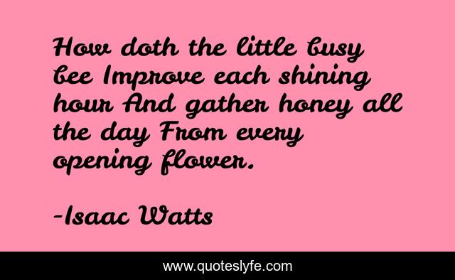 This page presents the quote "How doth the little busy bee Improve each shining hour And gather honey all the day From every opening flower.". Author of this quote is Isaac Watts. .