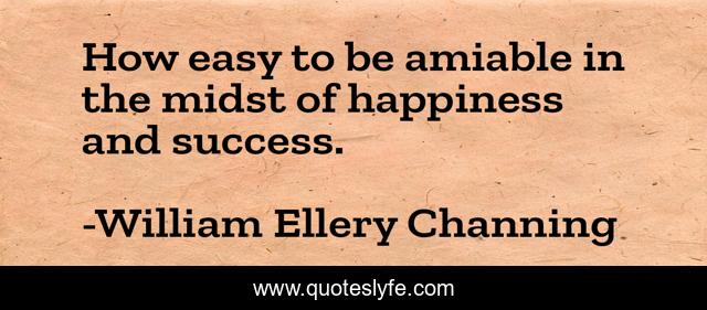 This page presents the quote "How easy to be amiable in the midst of happiness and success.". Author of this quote is William Ellery Channing. This quote is about midst, success, easy,.