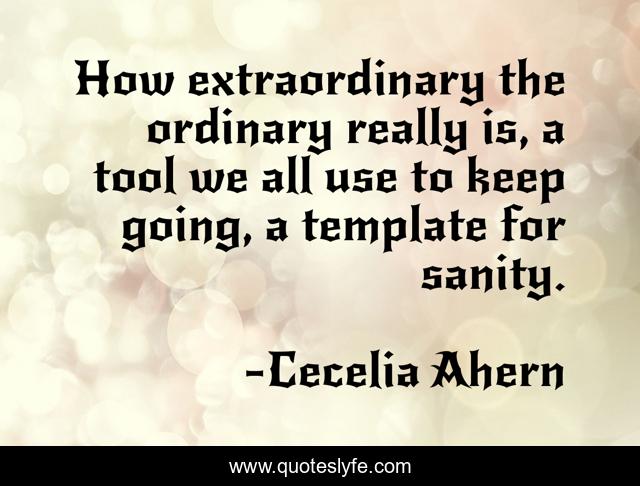 This page presents the quote "How extraordinary the ordinary really is, a tool we all use to keep going, a template for sanity.". Author of this quote is Cecelia Ahern. This quote is about mundane, life, sad,.