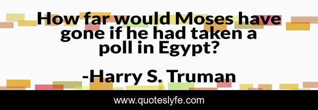 This page presents the quote "How far would Moses have gone if he had taken a poll in Egypt?". Author of this quote is Harry S. Truman. .