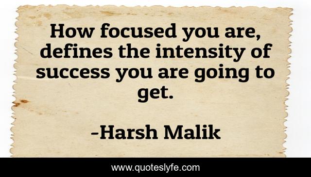 This page presents the quote "How focused you are, defines the intensity of success you are going to get.". Author of this quote is Harsh Malik. .