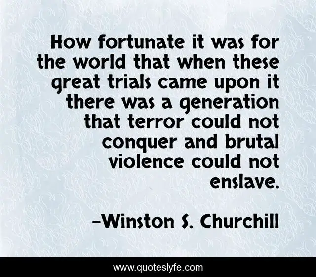This page presents the quote "How fortunate it was for the world that when these great trials came upon it there was a generation that terror could not conquer and brutal violence could not enslave.". Author of this quote is Winston S. Churchill. .