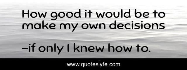 This page presents the quote "How good it would be to make my own decisions". Author of this quote is if only I knew how to.. This quote is about val wood, poor girl, rich girl,.